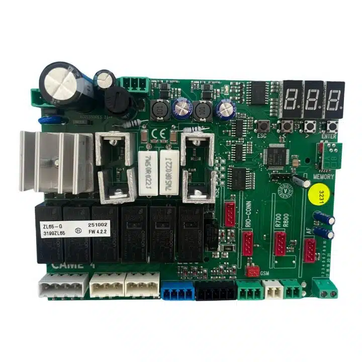 La carte électronique CAME ZL65 est à implanter dans l’armoire de commande du même modèle.