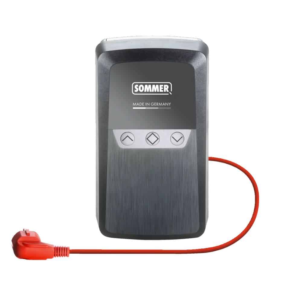 Le système sans fil bi-directionnel SOMMER SOMloq2 fait partie des éléments compris dans cette commande de porte. Vous pourrez d’ailleurs attribuer des fonctions individuelles à votre automatisme lors de la programmation du SOMMER SOMloq2. Il vous permettra aussi d’afficher l’état de la porte, mais aussi de commander de manière ciblée l’éclairage. Afin d’ouvrir plus facilement votre ouverture, ce modèle intelligent est équipé d’une fonction “Autorepeat”. Son chiffrement est sécurisé en AES 128 bits.