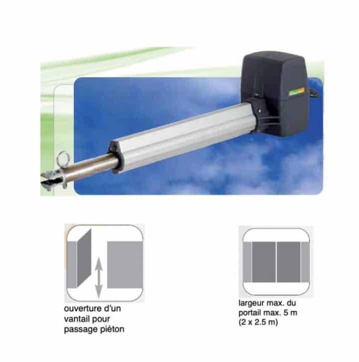 Le kit LIMUS ONE D80/1 dispose d’un moteur ayant une force de traction maximale de 800 N. Il est utile pour les portails ayant un ventail.