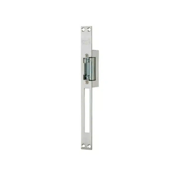 Ce modèle de gâche à une forme symétrique. Réversibles, vous pourrez l’installer dans le cadre de portes Din gauche et Din droite. Son volet est réglable jusqu’à 4 mm pour l’ajuster précisément sur votre porte. Afin de protéger les composants internes de cette gâche, une varistance est présente et évite des risques de surtension, aussi appelée effet de self. Retenez aussi que d’après CDVI, ces gâches à rupture sont alimentées en courant continu et ne sont pas polarisées, ce qui facilite leur installation.