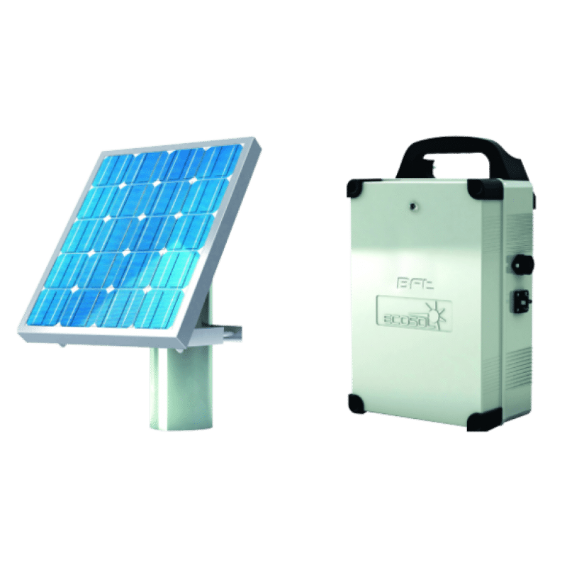 Un ensemble complet d’alimentation solaire vous intéresse ? Sachez que pour des installations de 24 V, BFT a ce qu’il faut, notamment grâce au Kit BFT ECOSOL (R070001). Ce produit est utilisable pour des installations de 24 V, et ce, dans des localités où il n’y a pas de réseau électrique ou si ce dernier est d’un accès difficile. L’alimentation de ce système est 100% solaire. En conséquence, ce produit représente une économie d’énergie et financière.