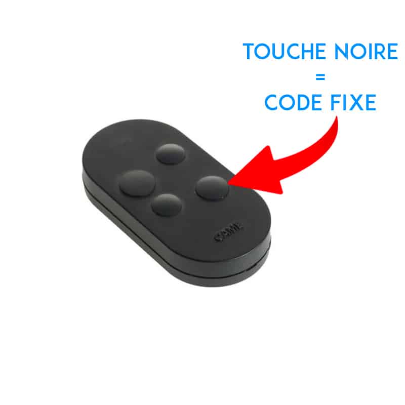 Note : La couleur des touches est très importante afin de choisir le bon produit. Ce modèle existe en version Rolling Code (ou code tournant) avec des touches de couleur blanche. Si les touches de votre télécommande sont de couleur noire alors vous avez le modèle à code simple, qui n’est pas compatible. Au dos de votre télécommande le code à 3 lettres (après le TOPD2 ou TOPD4) vous permet aussi de déterminer quel modèle vous avez. Si le code commence par R, alors vous avez une Rolling Code (ou code tournant). Si le code commence par F, alors vous avez une Came à code fixe.