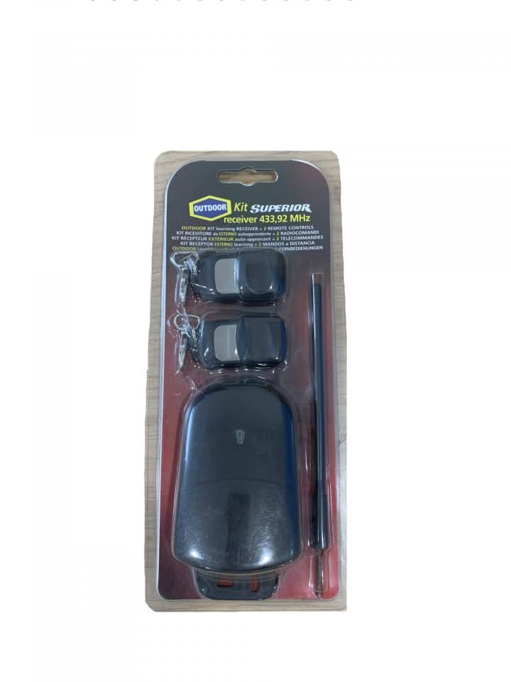 Ce produit est un kit récepteur autoapprenant. Il est composé d’un récepteur et de deux télécommandes. Il est utilisable avec des barrières levantes ou alors une porte de garage. Ce produit a une compatibilité maximale avec toutes les marques disposant d’une fréquence de 433.92 MHz. Il est alimenté en 12/24 V (AC).